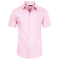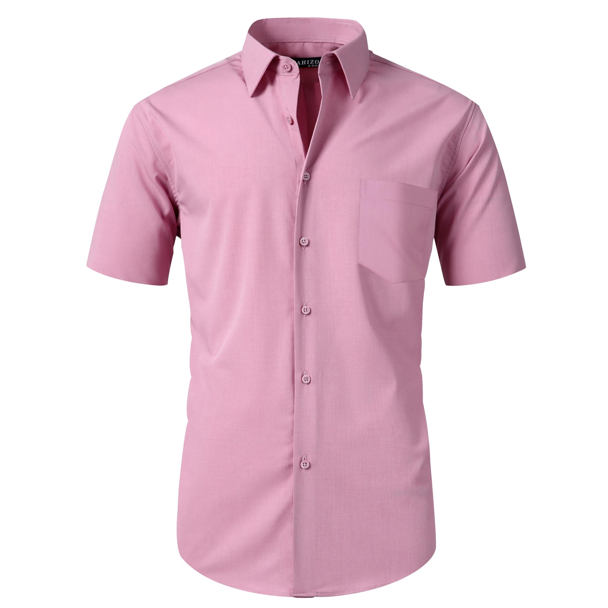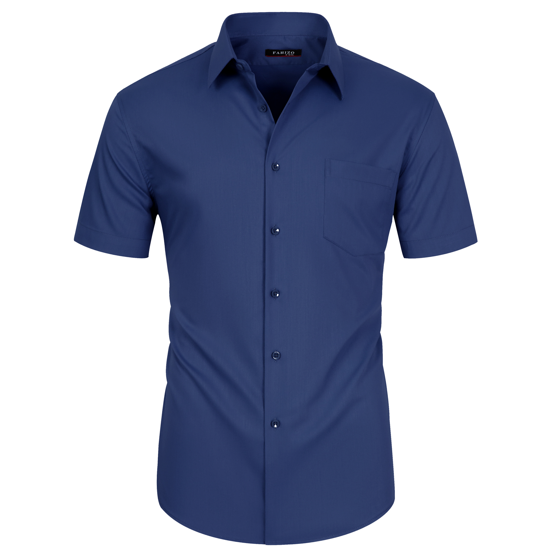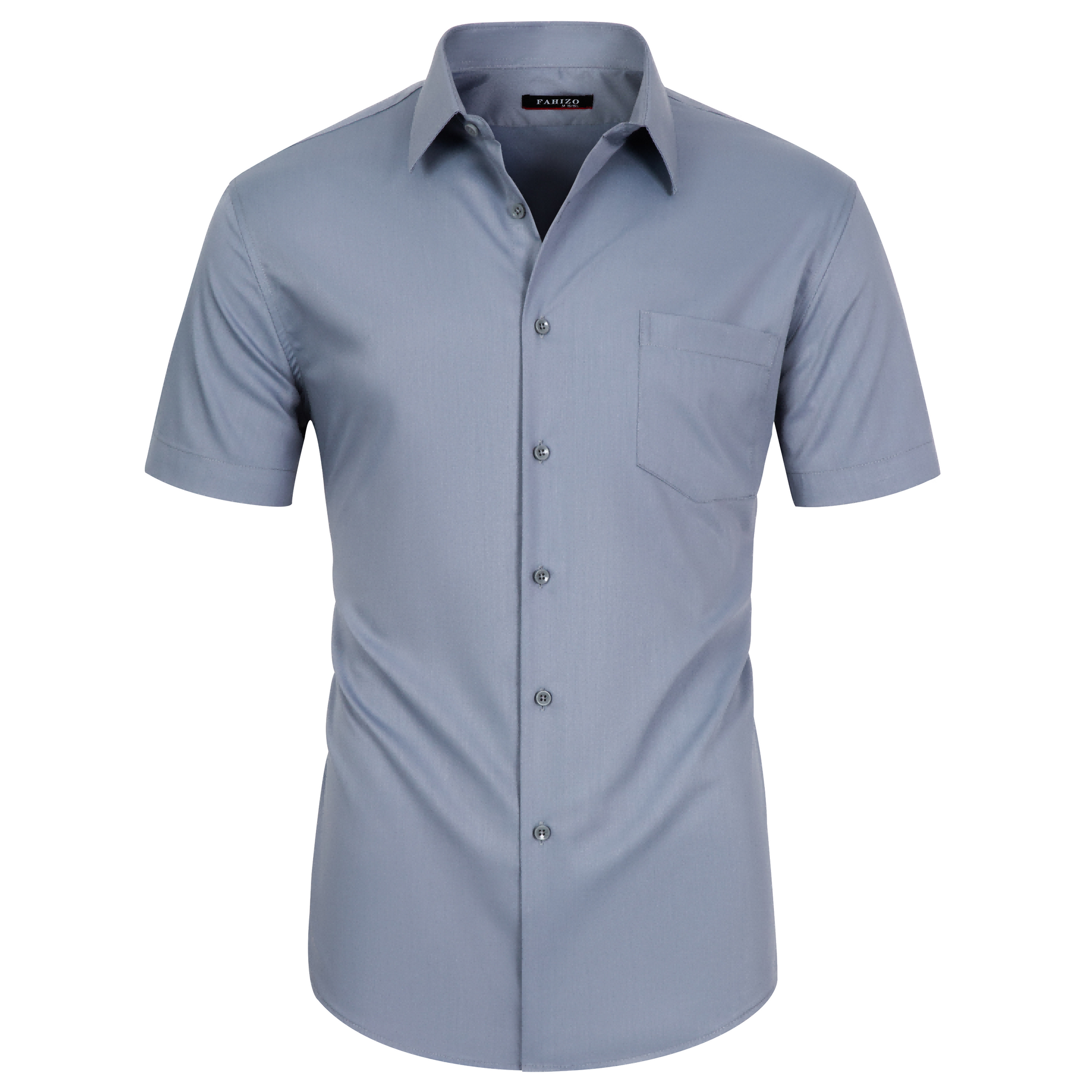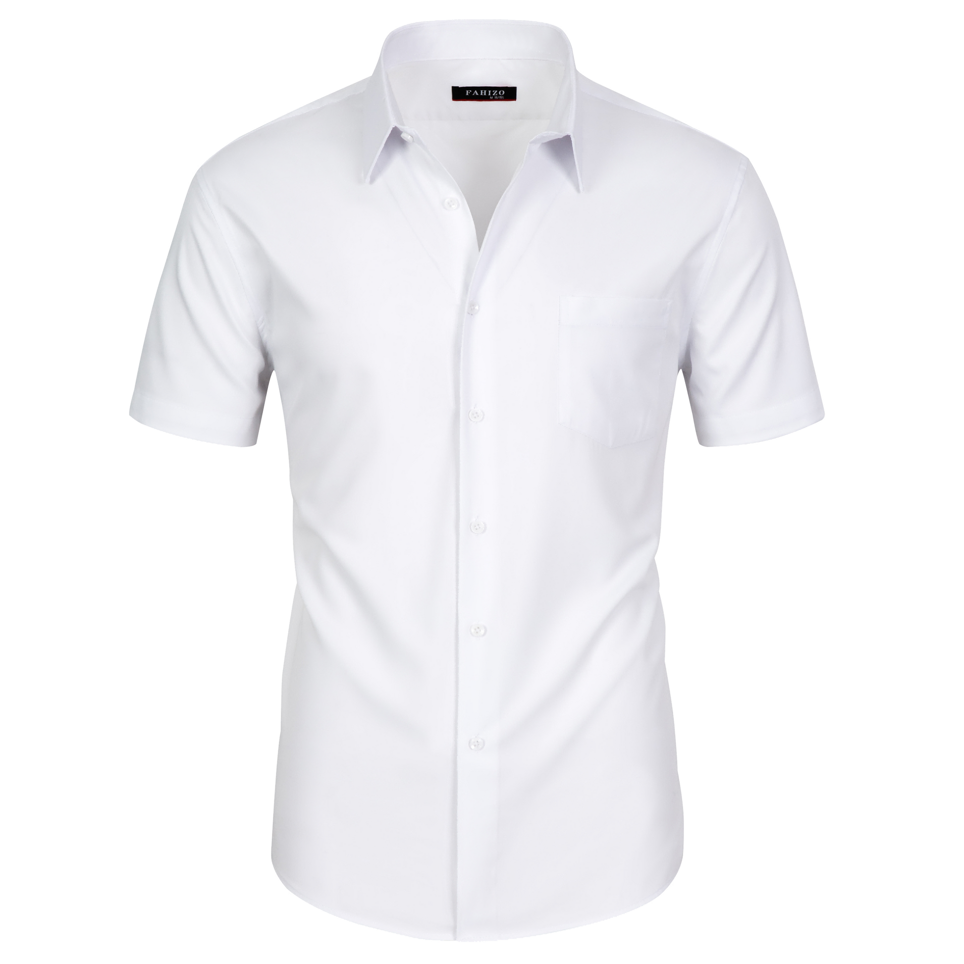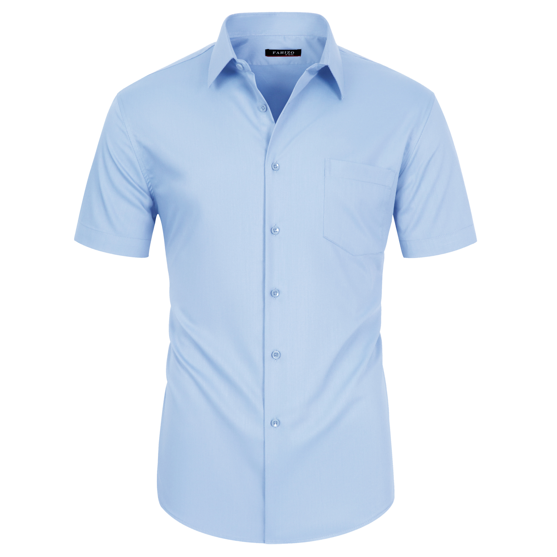 FAHIZO Men's Short Sleeve Dress Shirt Regular Fit Solid Casual Business Stretch Button Down Shirts with Pocket